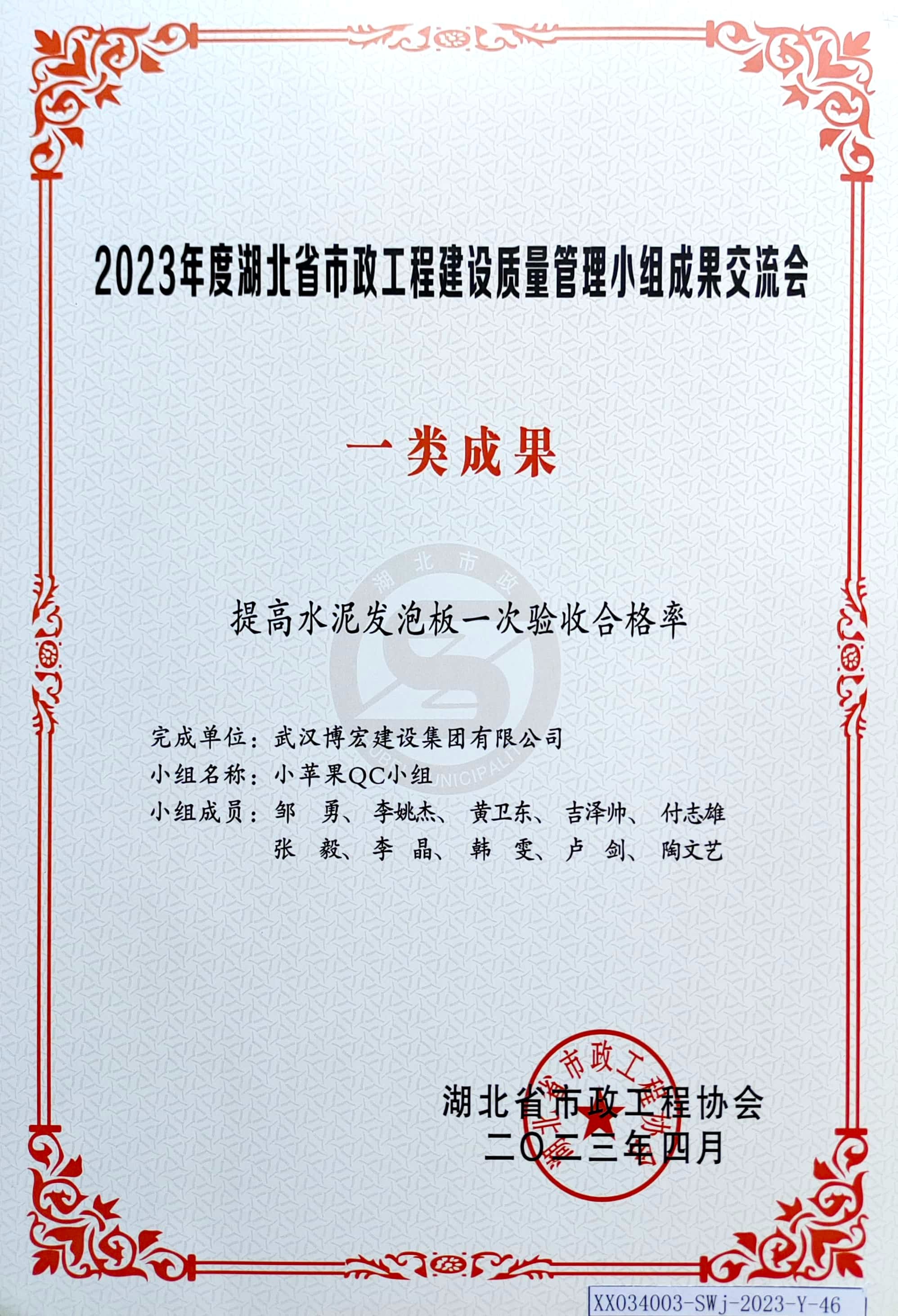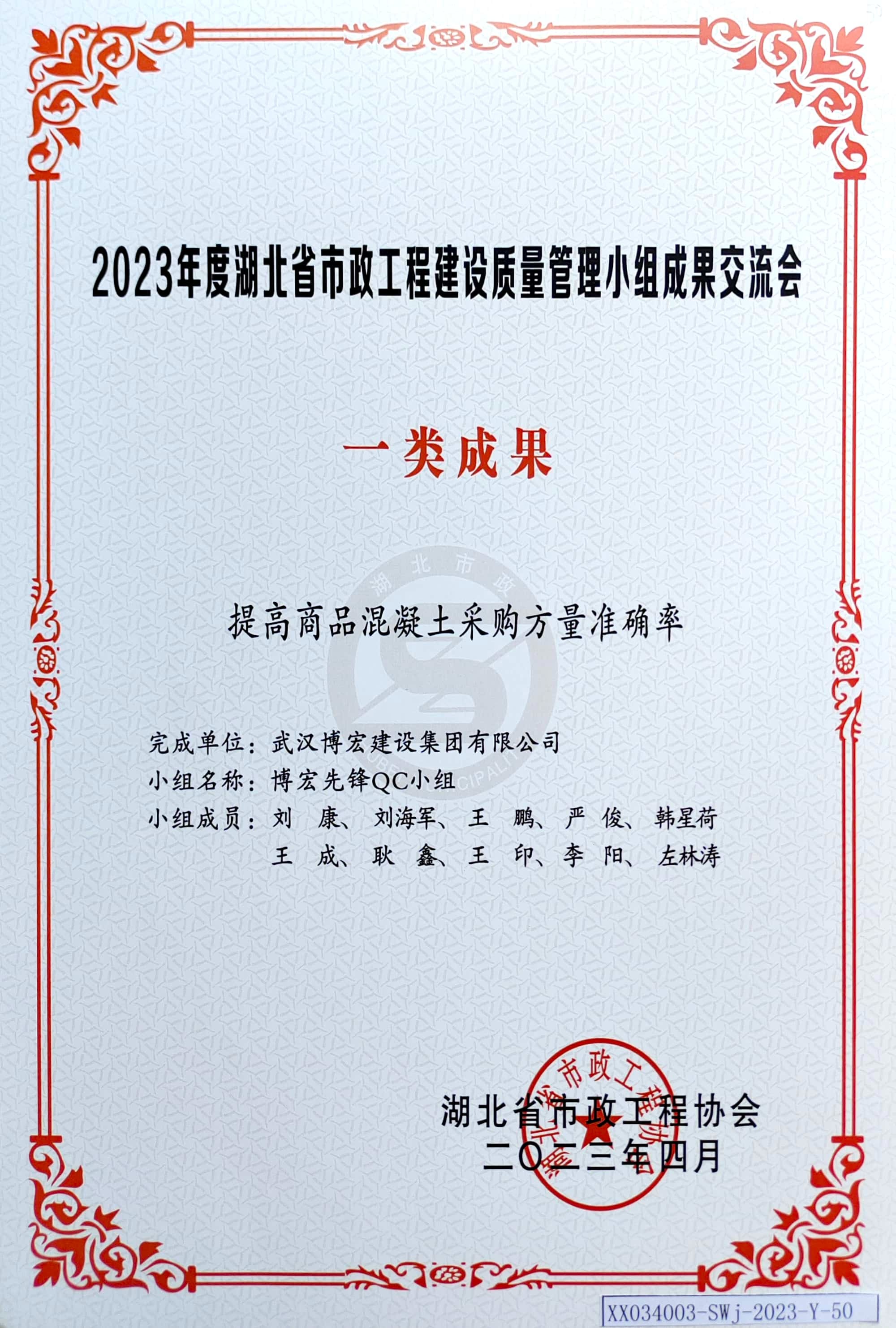 2023年度湖北省市政工程建設(shè)質(zhì)量管理小組成果交流會(huì)-一類成果