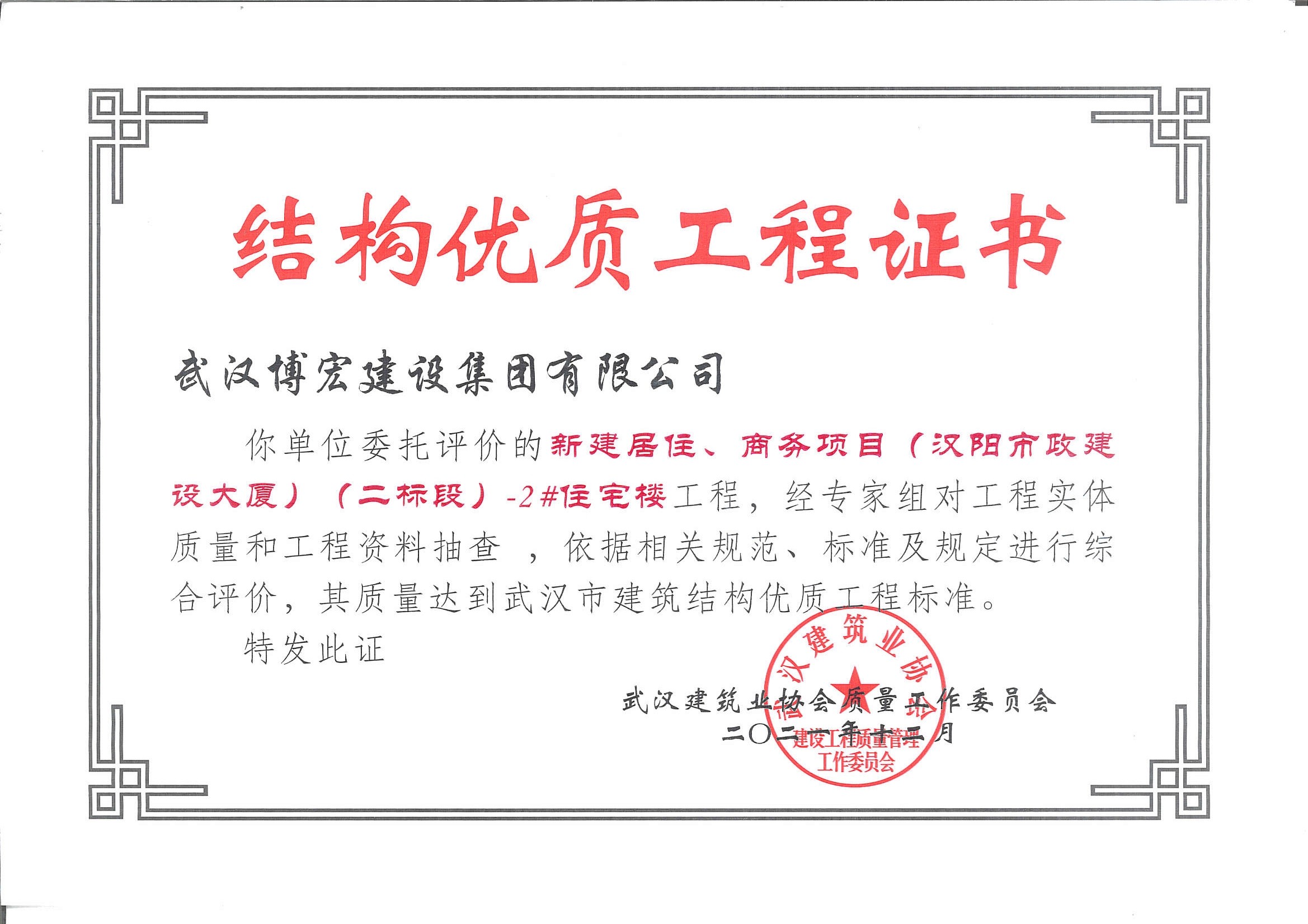 漢陽市政大廈(二標(biāo)段)-2#住宅樓武漢市建筑結(jié)構(gòu)優(yōu)質(zhì)工程