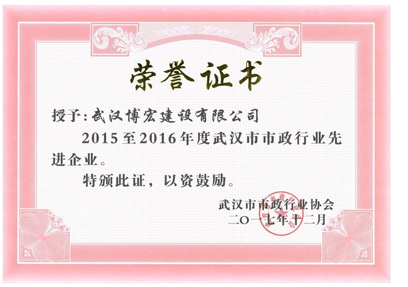 2015-2016市市政行業(yè)先進企業(yè)”