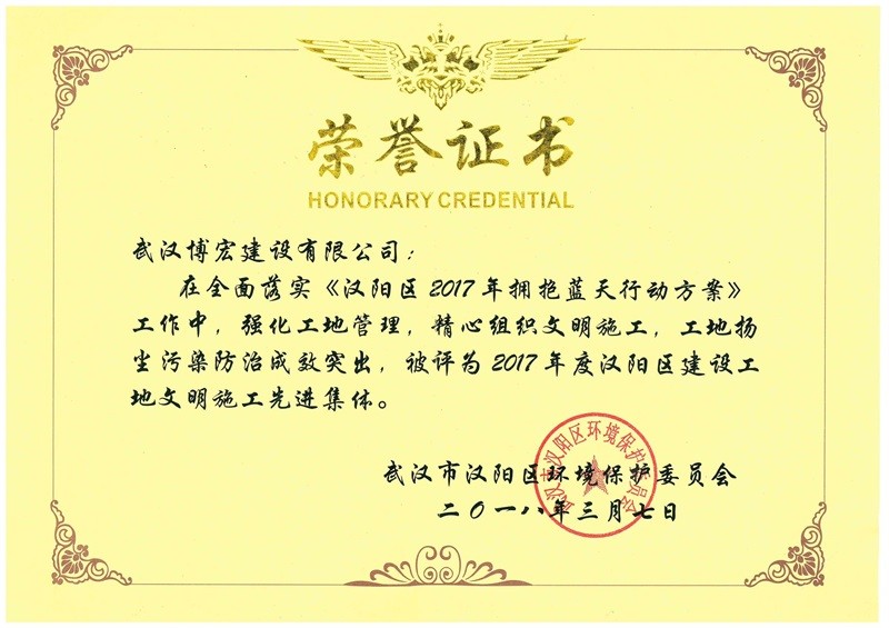 2017年度漢陽區(qū)建設(shè)工地文明施工先進集體