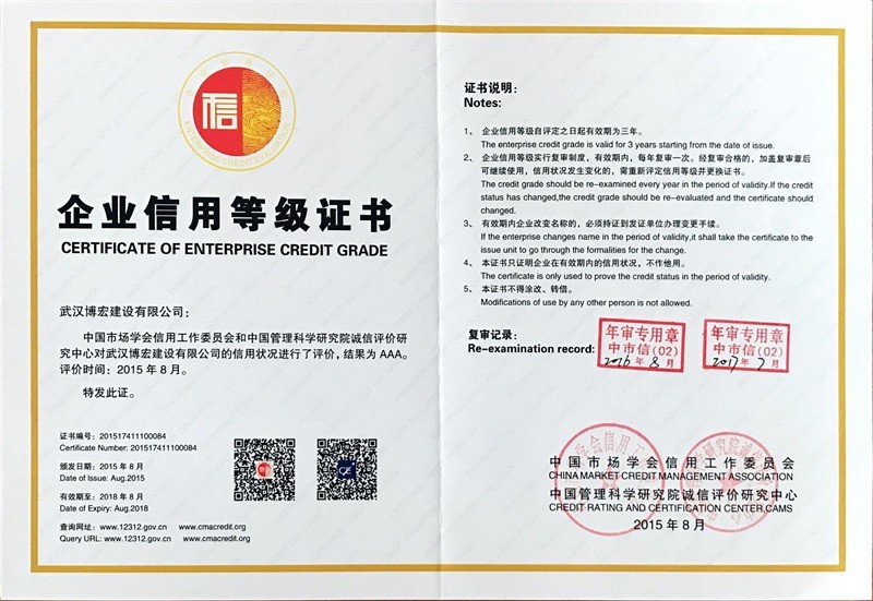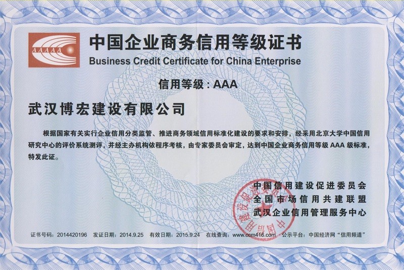 武漢地區(qū)建筑業(yè)企業(yè)信用等級(jí)證書(shū)