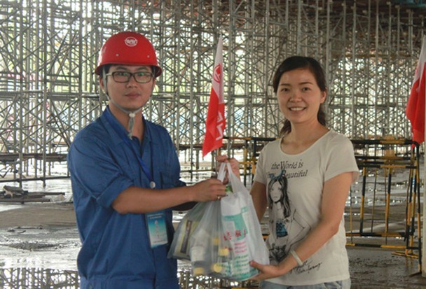 入夏以來,武漢的高溫天氣持續(xù)不下,博宏建設的職工們?yōu)榱烁黜椆こ踢M展順利實施仍堅守在施工一線。6月27日,博宏建設工會主席李俊同志代表公司到各項目部去看望和慰問一線施工人員,為他們送去了防暑降溫藥,讓他們合理安排勞動作息時間,注意安全,避免長時間在高溫下工作。