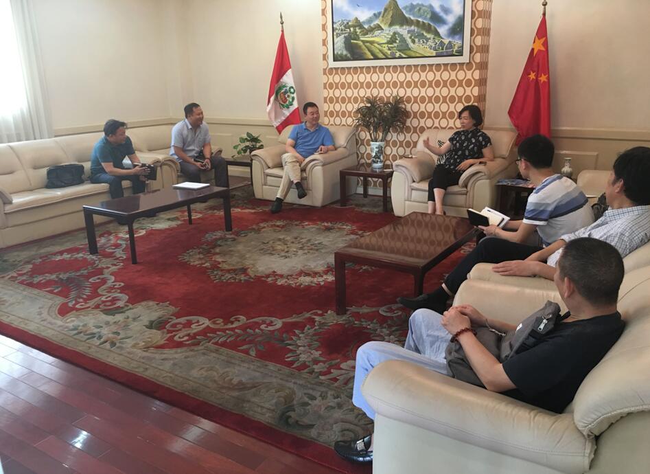 考察團(tuán)隊(duì)會(huì)見(jiàn)中國(guó)駐秘魯大使館經(jīng)濟(jì)商務(wù)參贊處郝沁梅參贊(右四)