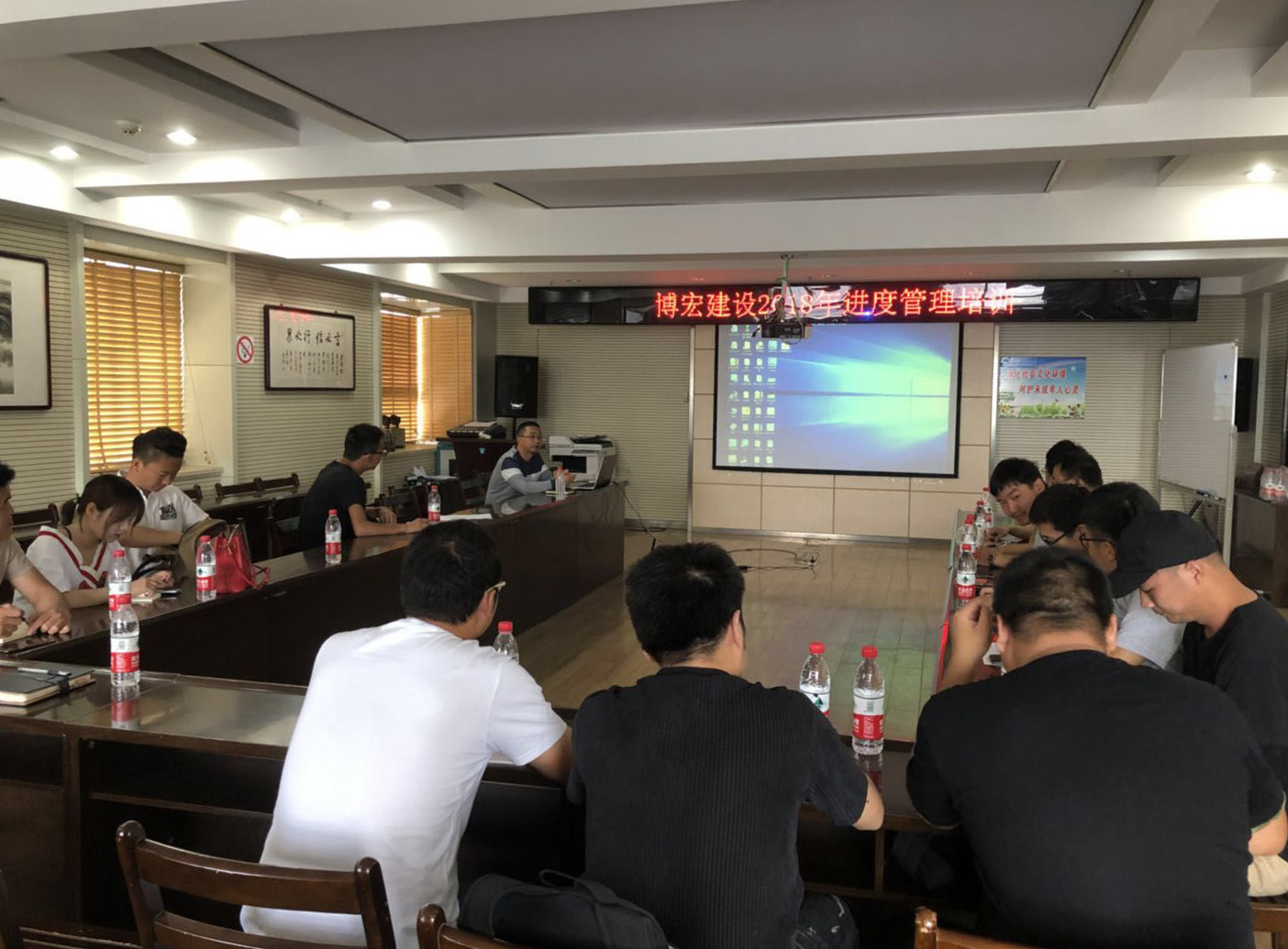 5月26日上午,博宏建設就項目進度管理進行專題培訓,支部副書記郭一清、各項目部施工員以及琴臺綠化公司部分施工員等參與此次活動。針對進度管控主題,技術負責人徐家鵬、姜昊作為特邀講師進行了現(xiàn)場授課。徐家鵬就進度管控的專業(yè)方法理論知識進行了重點講述,姜昊則對地下結構封頂、主體結構封頂、竣工驗收等關鍵節(jié)點把控以及常用進度控制方法等進行了集中講解。各項目施工員也一一分享了自己的工作體會與相關經驗,并就遇到的共同問題進行了集中討論。