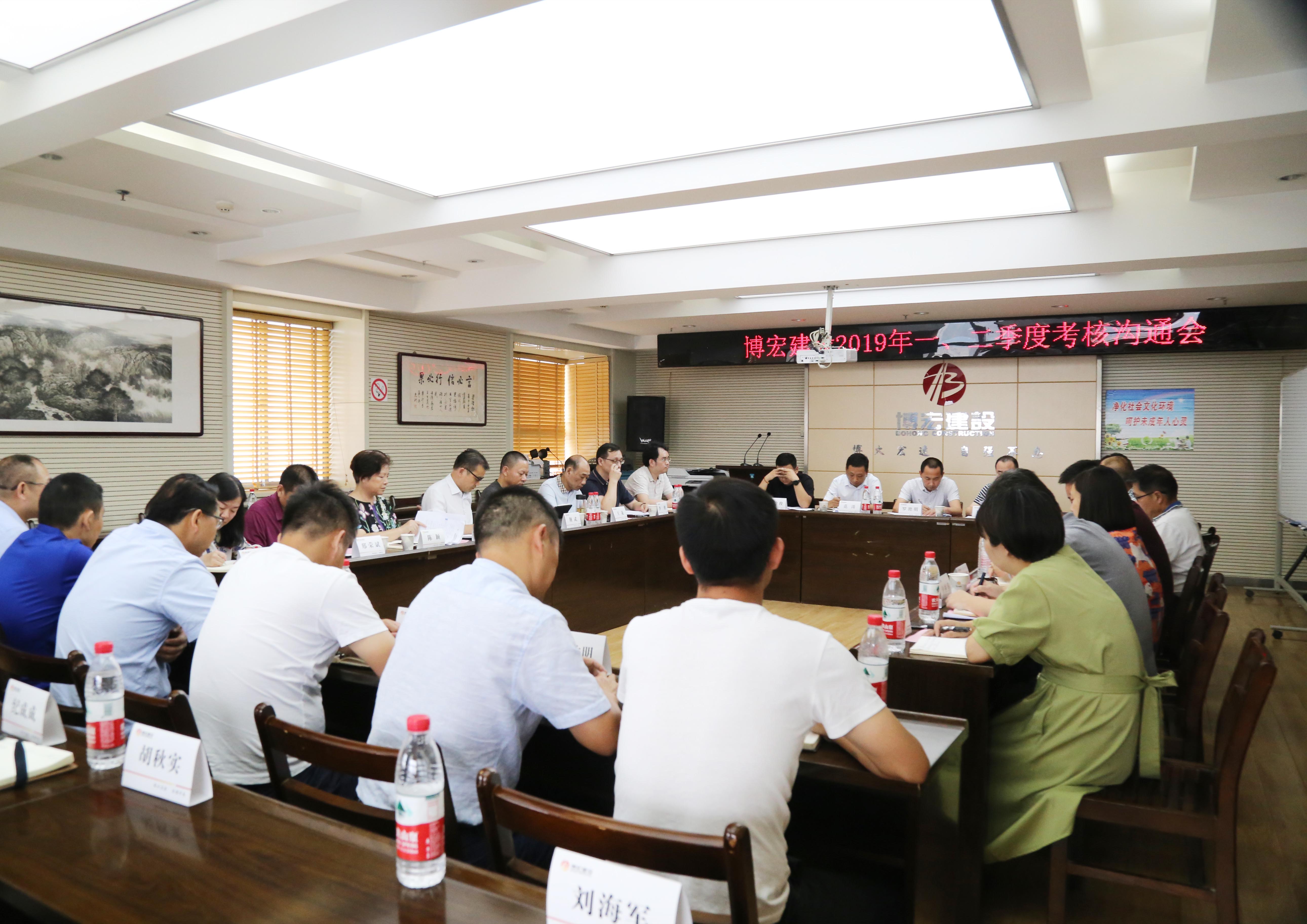 ?????????? 7月9日下午2:30,公司2019年一、二季度考核溝通會順利召開,會議就博宏建設(shè)上半年考核工作目標(biāo)完成情況進(jìn)行了分析和交流,并就下半年工作思路進(jìn)行進(jìn)一步明確。漢陽市政集團(tuán)公司黨委班子、各科室負(fù)責(zé)人、博宏建設(shè)支部班子、各部門負(fù)責(zé)人、項目經(jīng)理及技術(shù)負(fù)責(zé)人共計40余人參加了此次會議。
