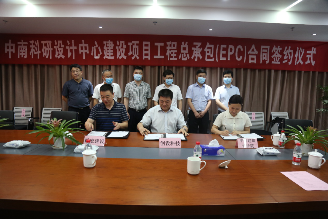 武漢創(chuàng)設(shè)科技發(fā)展有限公司董事長周忠義與中南建筑設(shè)計(jì)院股份有限公司總經(jīng)理?xiàng)顒θA、武漢博宏建設(shè)有限公司董事長錢濤簽署EPC工程總承包后,楊劍華表示:中南建筑設(shè)計(jì)院作為EPC工程總承包聯(lián)合體牽頭方,將增強(qiáng)政治意識,作為頭號工程來抓,精心設(shè)計(jì)、整體謀劃,高質(zhì)量推動項(xiàng)目建設(shè)工作。虞志鵬表示武漢博宏建設(shè)有限公司作為中南科研設(shè)計(jì)中心EPC工程總承包聯(lián)合體成員,將全面抓好工程施工和現(xiàn)場管理,做出讓甲方滿意的高質(zhì)量工程。
