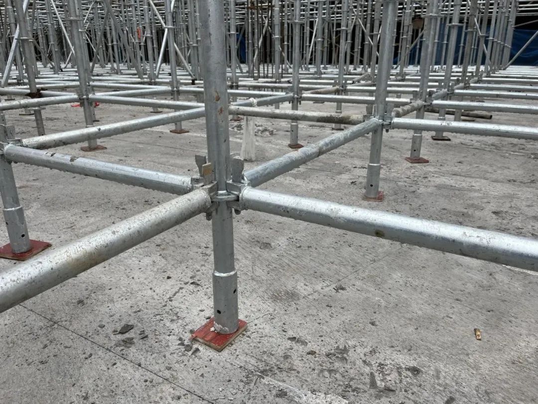 盤扣式腳手架立桿采用低合金結(jié)構(gòu)(國標(biāo)Q345B),強(qiáng)度高于傳統(tǒng)腳手架碳鋼管(國標(biāo)Q235)1.5-2倍,主要構(gòu)件采用內(nèi)外熱鍍鋅防腐工藝,既提高了產(chǎn)品壽命,又做到了外觀整潔、美觀。