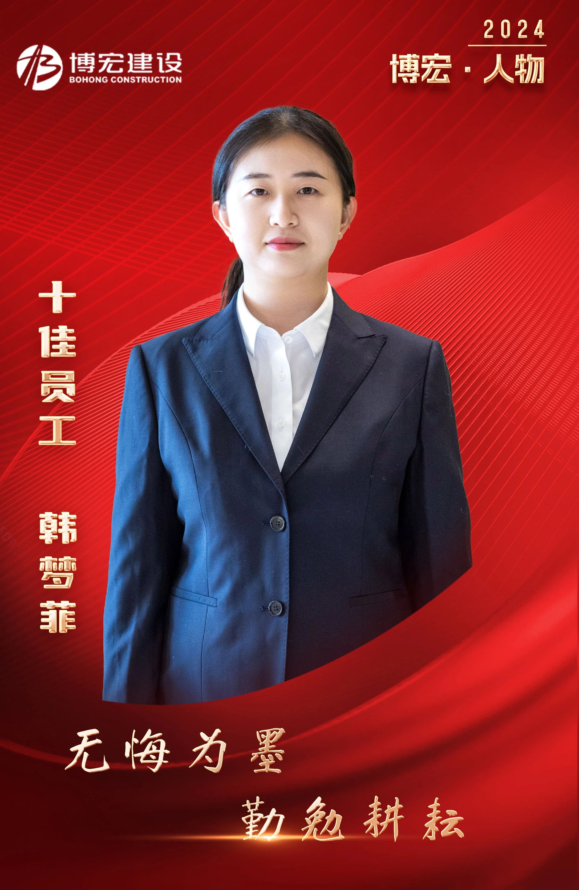 追溯過往,走過的路都是歷練;暢想未來,追風(fēng)趕月從未停歇。正是她穩(wěn)扎穩(wěn)打的個(gè)性,讓她在短短兩年的時(shí)間,成長(zhǎng)為獨(dú)當(dāng)一面的業(yè)務(wù)骨干,因出色的工作能力和吃苦耐勞的精神,獲評(píng)博宏建設(shè)集團(tuán)2023年度“十佳員工”。