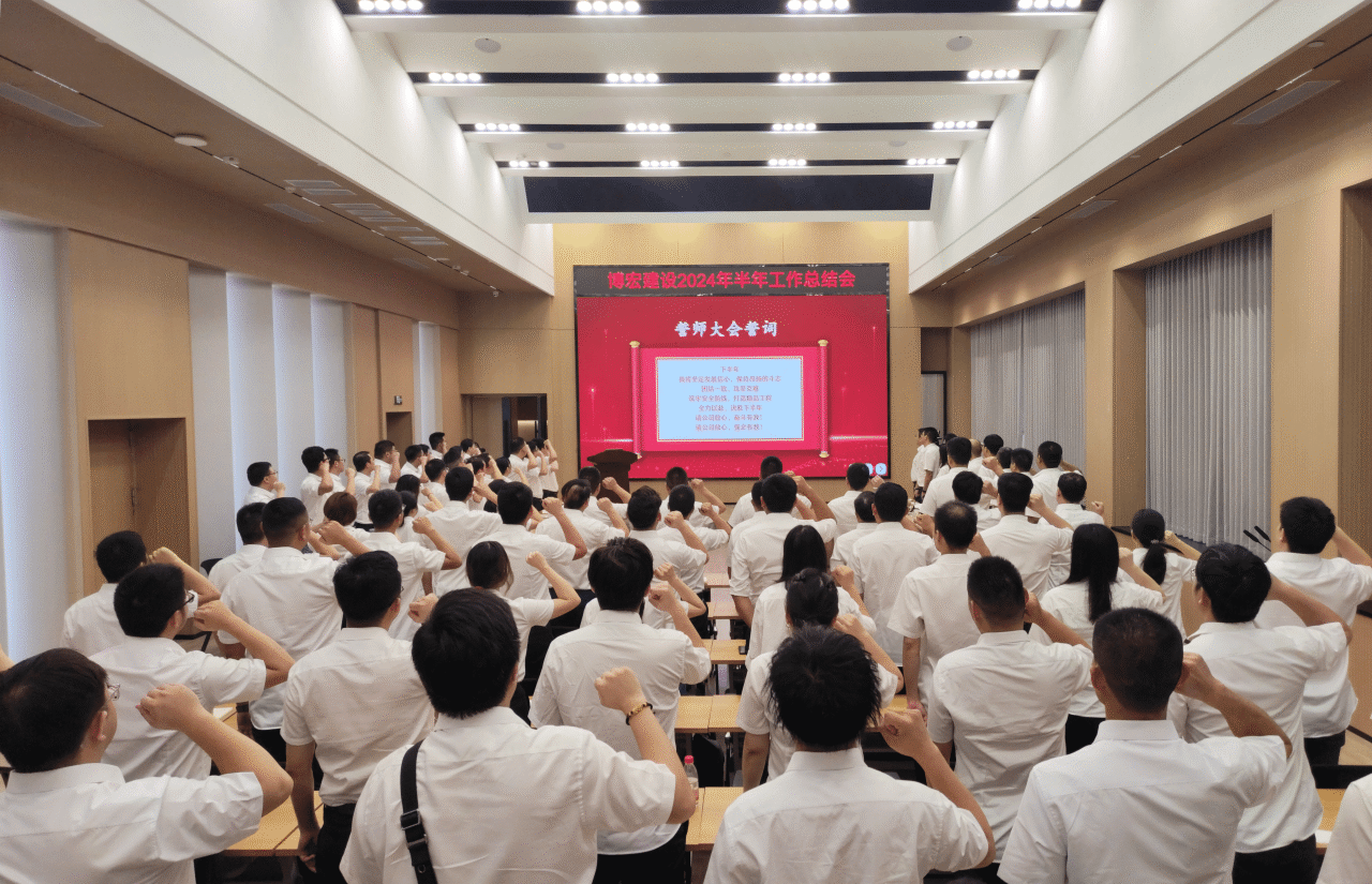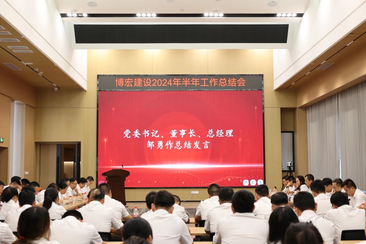 半年總結(jié)蓄新力,錨定目標再啟航。7月27日下午,博宏建設(shè)集團順利召開2024年半年工作總結(jié)會。公司黨委班子、總助、部門及項目部負責(zé)人(含副部長)、項目班子成員(生產(chǎn)經(jīng)理、商務(wù)經(jīng)理、材料員)共計78人參會。會議由黨委副書記郭一清主持。